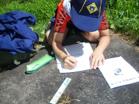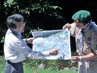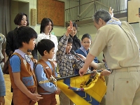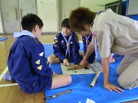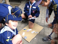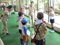 指導員の方に、☆について教えてもらいました。 スカウトも興味しんしん!
