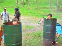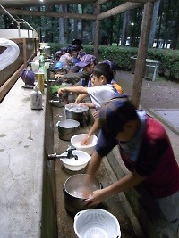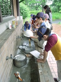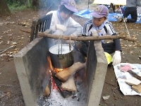 ガールスカウトが運営している汚水(ドロ水)を使ってご飯を炊く体験ポイントです。