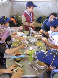 3泊する部屋で快適な生活をするため、みんなで飾り付けをしました。 活動をすればお腹も減ります。 スカウトたちは食欲旺盛!でも、好き嫌いなく食べよう♪