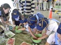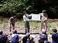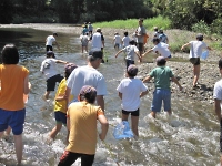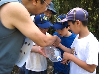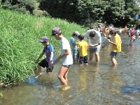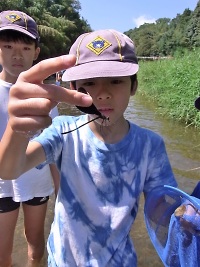 網で小魚や水生昆虫を採る遊びですが、実に楽しい☆ リーダーもスカウトと一緒に、楽しんじゃいましたO(≧∇≦)O 当然、観察後は川にリリースしています。