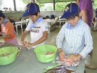 うさぎスカウトが、お肉をコネコネ・・・