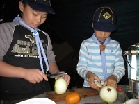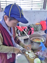 くま・しかスカウトが、ポトフ用の野菜を切ってます。手元に気をつけて!