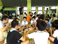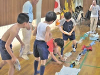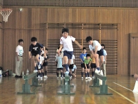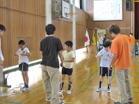 区内の体育館で、スポーツ集会をしました。 夏キャンプに向けて、チームワークを高めるチャンス☆ 組の仲間と、がんばれ!!