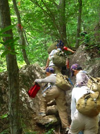 守屋山の上り坂は大変です。 みんなで助け合って、登ろう☆