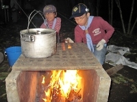 朝食も自分たちで火を起こして作ります。