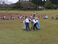 力仕事のあとは、やっぱりゲーム! 広い芝生で思いっきり遊びました。