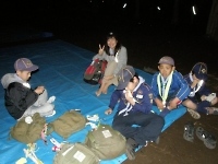 組で助け合いながら、中間ポイント大休止に到着v(>_<) 保護者の皆様が用意されたバナナとかサンドイッチを食べて、エネルギー補給♪