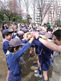 年に一度開催される文京区桜祭りに、カブスカウト隊とビーバースカウト隊が清掃奉仕活動の一環として参加しました。