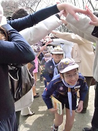 閉会式後、くまスカウト以外でアーチを作りお見送りをしました。 ボーイ隊に行っても頑張ってくれ! ともかく皆、一年間おつかれさまでした ☆ヽ(〃^▽^〃)ノ