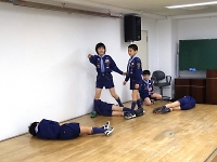 強風警報+雨のため、残念ながらキャンプは中止・・・ でも、組ごとで一年間の思い出をスタンツ(演劇)にして発表し楽しみました〜\(^▽^)/