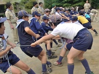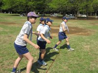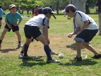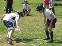 組同士の対抗戦で、お互いの組の前に置いてあるロープを、自分の陣地に持ち帰ってくるゲームです。