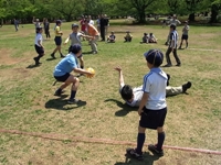 都内の広い公園で、ドッチボールやロープ取りなど、体を動かすゲームを楽しみました!!