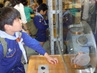 組の皆で指令書(問題)の答えを探しながら、館内を見学しているようすです。