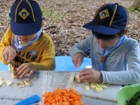 夕方は、料理☆ リーダーが包丁の使い方や料理方法を説明しているようすです♪