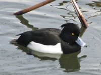 双眼鏡で遠くの野鳥もバッチリ発見です。 まずは、後頭部に寝癖のような冠羽を持つキンクロハジロを発見! なんだか憎めない可愛い渡り鳥です(*´∇`*)