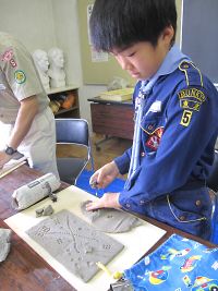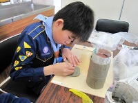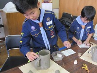 まずは、マグカップ作りの手順をしっかり覚えよう♪ スカウトたちは、いつも以上に真剣そのもの。 みんなから、カッコイイものを作りたいという気持ちが伝わってきました\(^▽^)