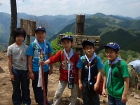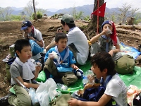 景色の良い頂上で昼食タイムです。 組の仲間と「おかず交換」を楽しみつつ、腹ペコなスカウトたちは直に昼食をたいらげてしまいました。