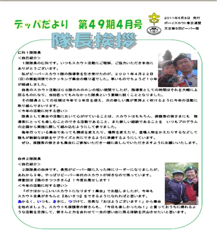 ビーバー隊の新聞 「デッパだより」 4月号です