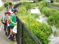 自然観察以外に行った水質調査は、ところどころの橋や湧水地で水を汲み上げ行いました。 そして、各組で神田川と落合川の水質比較をした結果は、神田川の水は汚れているが落合川の水は綺麗だということでした\(^▽^)