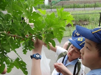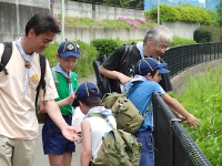 川沿いには、たくさんの草花がありました。 組で持っている図鑑を片手に、じっくり観察しながらハイキングです。 桑の実を見つけたスカウトいわく、ムクドリかヒヨドリが実をくわえていたらしいです♪