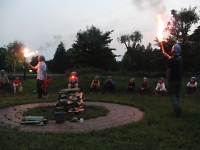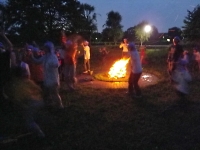 夜は隊長たちの点火を合図に、営火(キャンプファイヤー)のスタートです♪ 暗闇に燃え上がる火を見つつスカウトもリーダーたちも、自然とテンションがあがってきます。 スカウト全員で歌を歌ったり踊ったりして楽しみました☆ そして、各組のスタンツ(演劇)も面白く笑いがたえない素敵な時間となりましたo(*^▽^*)o
