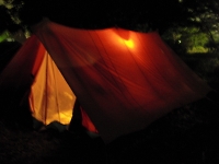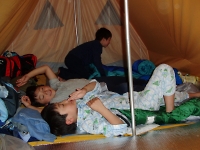 寝るときも楽しい時間です。 テントの中でパジャマに着替えることや寝袋に入ることがワクワクドキドキ♪ でも、寝袋に入ると電池を使い果たして直ぐに充電モードの睡眠へ・・・ みんな、おやすみなさい☆