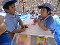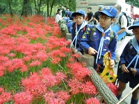 昼食の後は、近くの用水路でガサガサをしてカエル、ドジョウ、ヤゴ、クチボソ(モツゴ)などをとってみたり、巾着田で満開の曼珠沙華を見て楽しみました。 ※つかまえた生物は、観察後リリースしています。