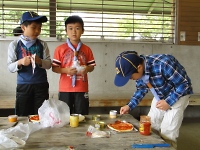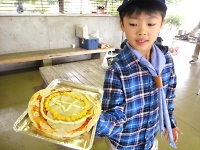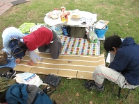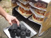 食事は全て手作り。各班料理コンテスト(チャーハン)ダンボールでのピザ焼き・・