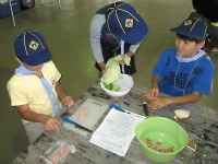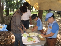 そして、やっとハイキング開始です。 覚えた技能を使うゲームポイントを数ヶ所まわり、約1時間30分くらいでキャンプ地に戻ってきました。 どの班も覚えた技能を発揮でき楽しそうに戻ってきたことが印象的でした。