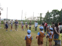 ビーバースカウトとカブスカウト&保護者の皆さんと一緒に、野外活動とカブスカウト隊の模擬集会をして、ボーイスカウト活動の一つを実践教育で体験してもらいました。