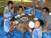 なんだかんだで、美味しい生姜焼きと、つやつやのご飯が炊きあがり昼食タイムです。 売れ行きは好調で、どの班も残さず完食です。 ご飯は、家に帰っても好き嫌いなく残さず食べようね。