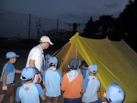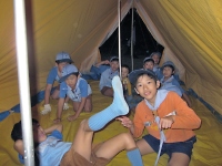 いつも、カブスカウト隊が1泊キャンプで使っているA型テントをリーダーたちが建ててくれました。 当然みんなでテントの中に入ってゴロゴロです。 テントの中は意外と広くていい感じ♪ こんどは自分たちでテントを建てて泊まろうね!