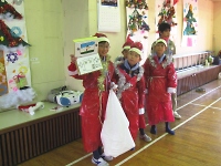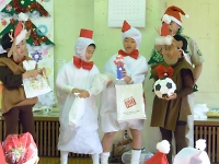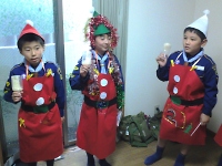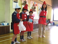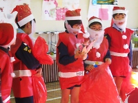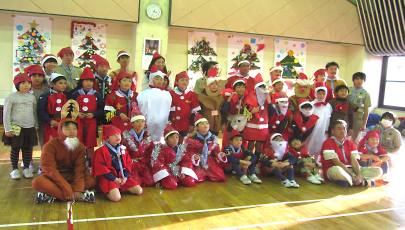 今日は保護者参加型の集会です。 組集会で作った衣装と欲しいクリスマスプレゼント、練習した歌の発表です。 みんな大きな声を出して頑張ろう♪