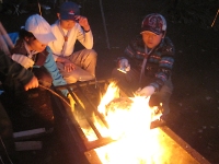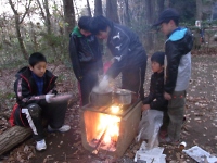 いつも苦戦する火起こしもボーイスカウトにかかれば、あっという間に火が起きます。 サスガです!