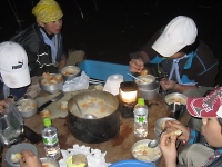 今日のメニューは、ホワイトシチューです。 自分たちで作った料理はいつも食べて美味しいですが、寒い夜空で食べた料理は身も心も温まります。 どの班も残さず完食でした。