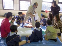 来場された子供たちと一緒に、ボーイスカウト活動で行うゲームを体験してもらいました。 うまく来場者の方にアナウンスができず集まりが少なめでしたが、参加した子供たちは楽しそうに遊んでいました。