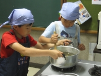 どんな料理を作るかを各組で発表してから料理開始です。 組集会で経験したことを思い出しながら、協力し合って料理を作ろう!!