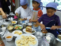 実食の前に・・・各組が担当した組の文化や作った料理について説明をしてくれました。 どの組も、解りやすく説明をしてくれましたが、インドのバターチキンカレーの美味しい匂いにはまいりました(;^_^A お腹が減るいっぽうでした。