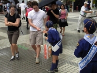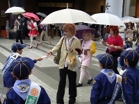 明るい社会を願って、スカウトたちは雨にも負けず自己啓発品のティッシュやバンドエードを配っていました。 受取っていただいた皆様、ありがとうございました。