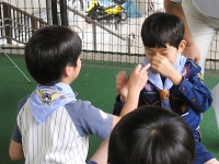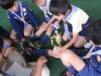 自分たちでできる救急法(ゲガをした時の対処法)を学びました。 これで、安心して夏キャンプに行けます。
