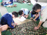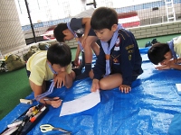 前回の隊集会で魔物たちの悪だくみ(富士山を大爆発させること)を知ってしまい、僕たちの味方!?謎のポエム会と一緒に富士山を守ることになりました。 そこで、魔物たちとの戦いに備えて各組ごと組集会をしました。