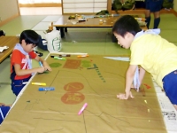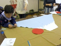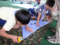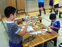 魔物たちとの戦いでは、吹き矢が有効的な戦いです。 そこで、スカウトたちは、カラフルで素敵な吹き矢を作っていました。 富士山を防衛するためには、目立つカッコいい旗が必須アイテムです。 各組ごとで組のシンボルとなる旗を作りました。 場所のイメージか富士山デザインが目立っていました。