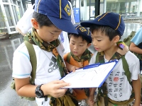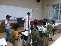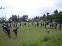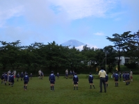カブ隊の朝はとっても忙しいです。 まずは、部屋と自分たちの荷物を片付け隊リーダーの点検をうけてから野外で朝礼です。 富士山を眺めつつ、気持ちよく朝礼をしました。