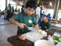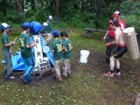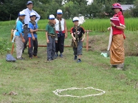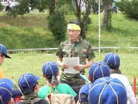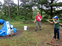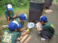 キャンプ地に到着後、広い芝生で開村式をしました。 そして、初日の当番組を決めてから元気に活動開始です。