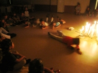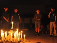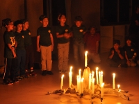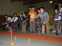 今夜は、カブ隊だけのキャンプファイヤーでしたが、残念ながら雨のため室内でキャンドルファイヤーを行いました。 今回スカウトたちには、ロンドンオリンピックをテーマにスタンツ(演劇)を考えてもらいました。 各組共に、柔道や水泳、陸上などの種目を、うまく取入れたスタンツを披露してくれて、楽しく笑いの絶えない心に残る時間となりました☆