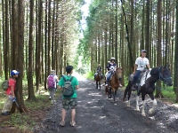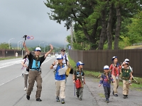 コマ地図をもってハイキング開始です。 歩いていると都会ではありえない馬とのすれ違い♪ どのスカウトたちもビックリしていました。