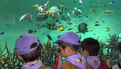 電車を乗り継ぎ、葛西臨海公園の水族館にいきました。