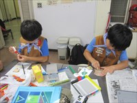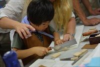 自分でデザインを考え、かたちをきりとり、ニスを塗りました。