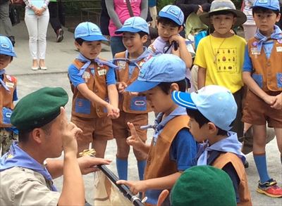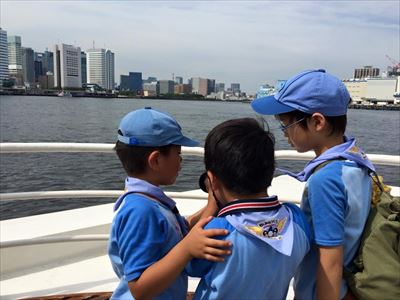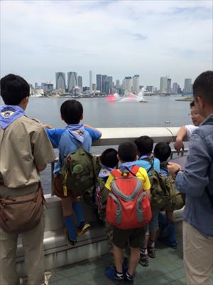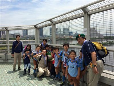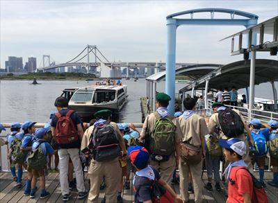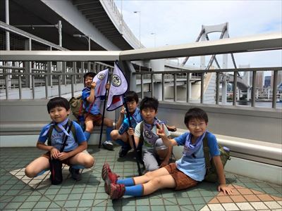 今日はレインボーブリッジハイク&水上バス集会です。開会式では、入隊者2名が仲間に加わりました。おめでとう!