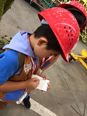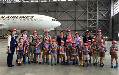 航空会社の整備ビルの見学です。施設の管理上、参加人数が限られているため、スカウトと指導者、お父様お手伝いのみの集会です。